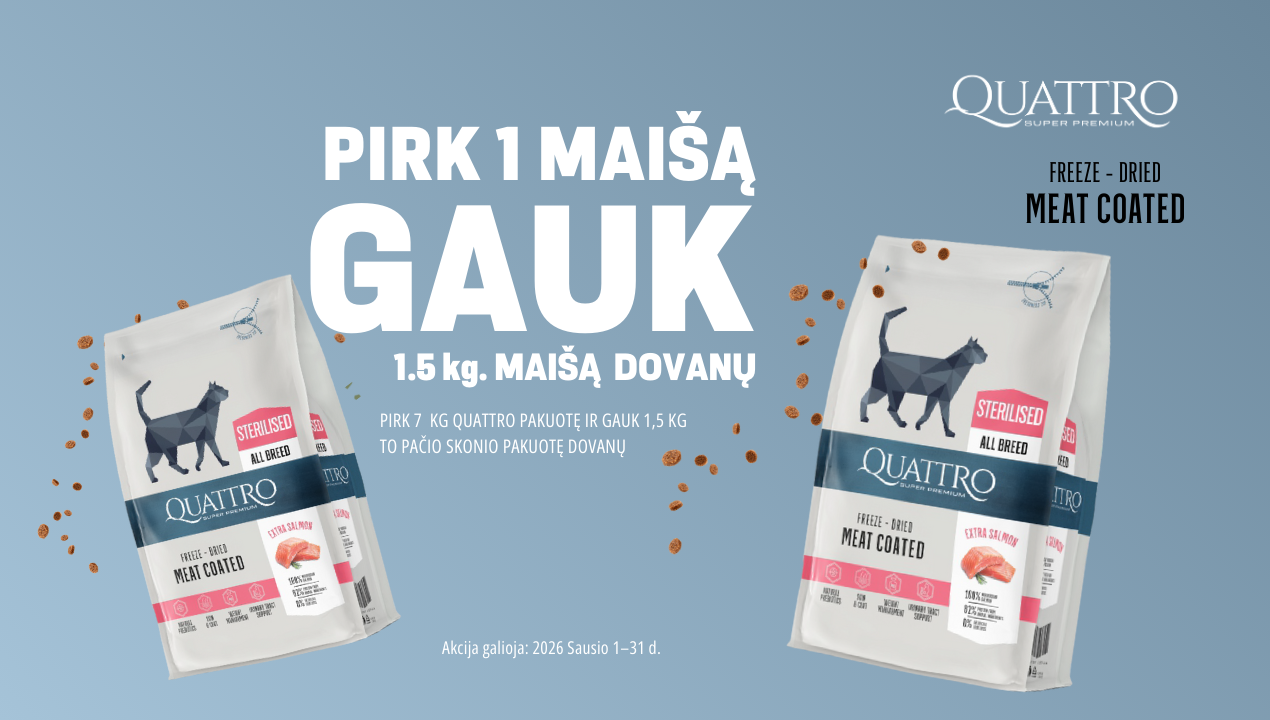 QUATTRO visavertis sausas pašaras suaugusioms naminėms katėms su antiena, 1,5 kg