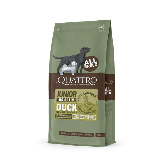 QUATTRO begrūdis visų veislių jaunų šunų pašaras su antiena 12kg