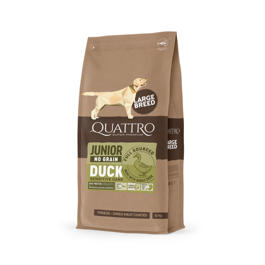 QUATTRO begrūdis didelių veislių jaunų šunų pašaras su antiena 12kg