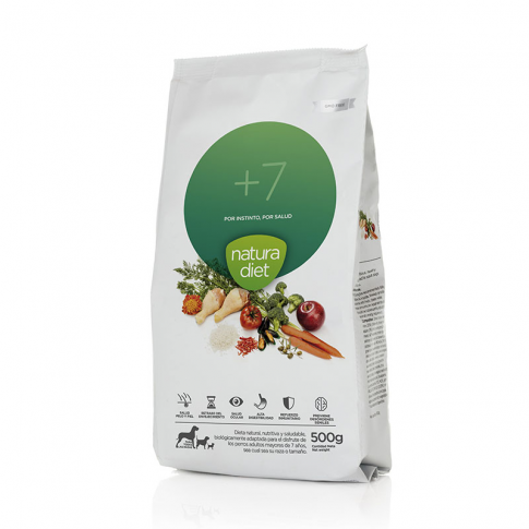 Visavertis ir natūralus maistas vyresniems nei septynerių metų šunims. Natura Diet +7 atitolina šunų senėjimą, padeda išvengti pažinimo sutrikimų ir stiprina akių sveikatą bei imuninę sistemą.