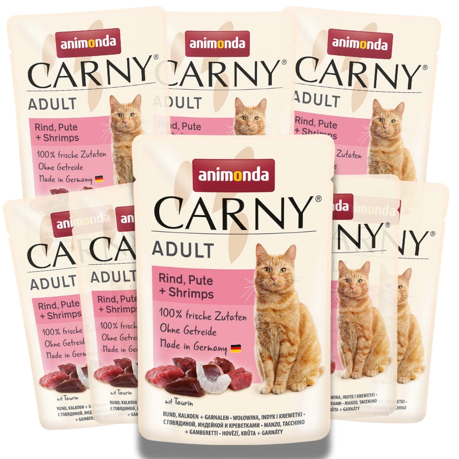 Animonda Carny Adult – Šlapias kačių maistas jautiena, kalakutiena ir krevetės 85 g – 8 rinkinys