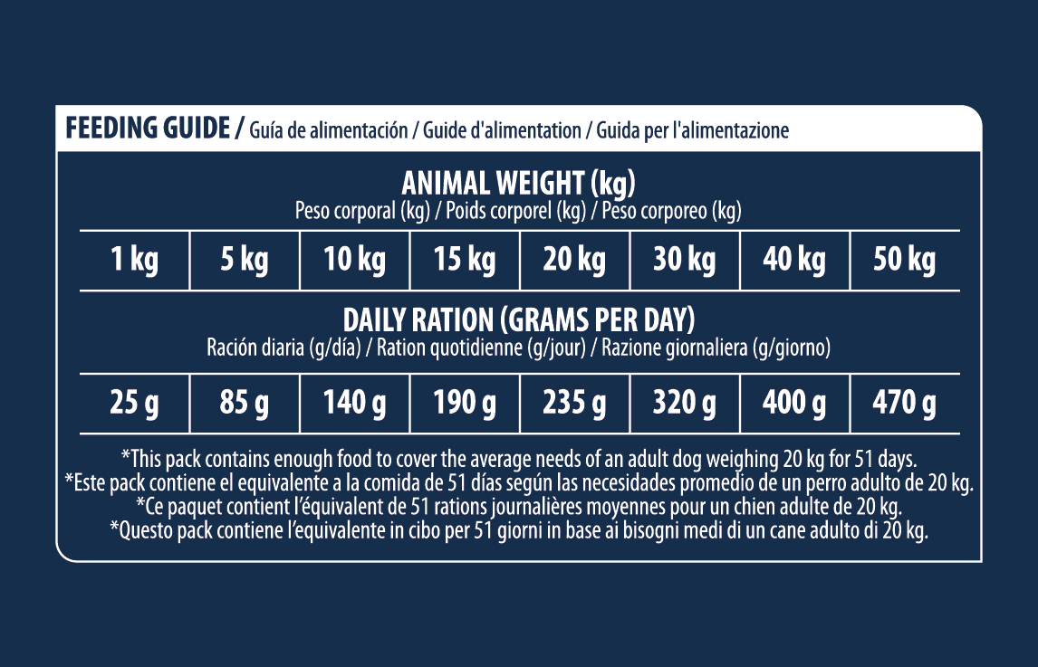 Analitinės sudedamosios dalys: žali baltymai 24.0%, žali riebalai 17.2%, žalia ląsteliena3.5%, žali pelenai 7.5%, Omega 3 0.9%, linolo rūgštis (Omega 6) 3.2%.