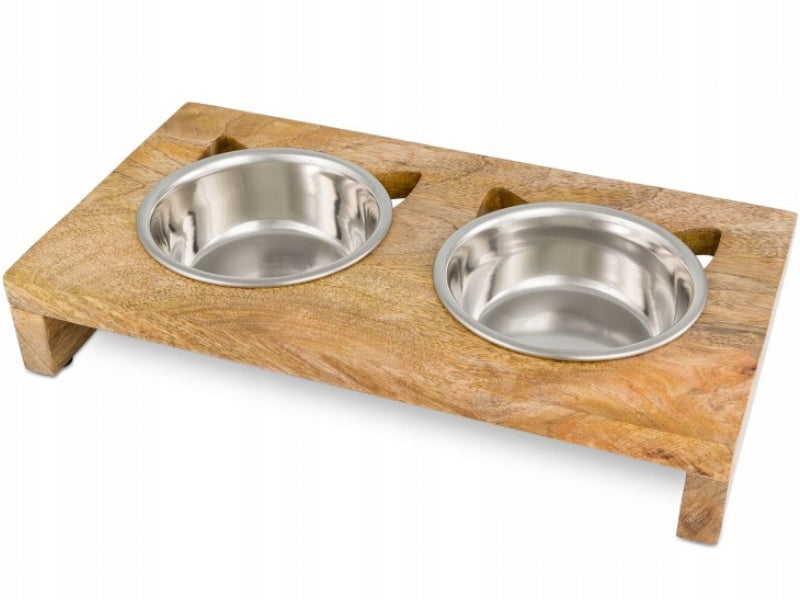 Nerūdijančio plieno dubenys ant medinio stovo katėms 2 x 0,2 L