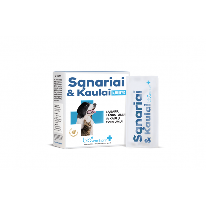 Maisto papildas augintiniams Bioveterinary Sąnariai & Kaulai be dažiklių, konservantų ir skonio stipriklių. Dėžutėje 28 pakeliai.