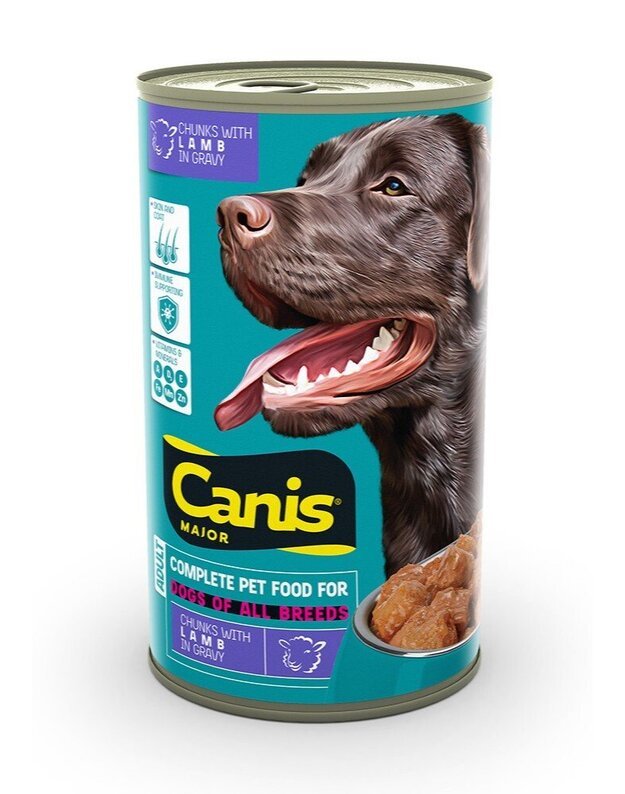 CANIS MAJOR konservuotas maistas šunims su ėriena, 1,25 kg
