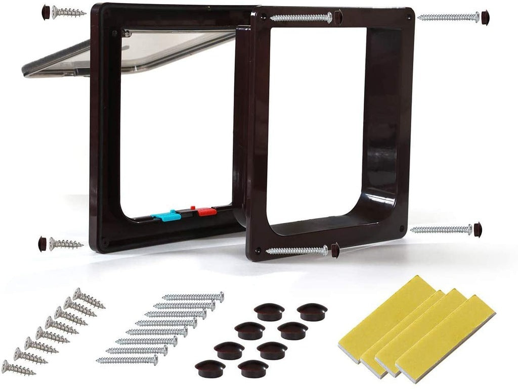 Durų atvartas su 4 krypčių magnetu, naminių gyvūnėlių durys katėms ir šunims (XL-29 x 25 x 5,5 cm, ruda)