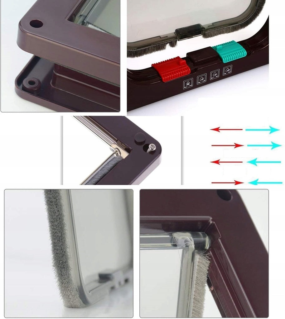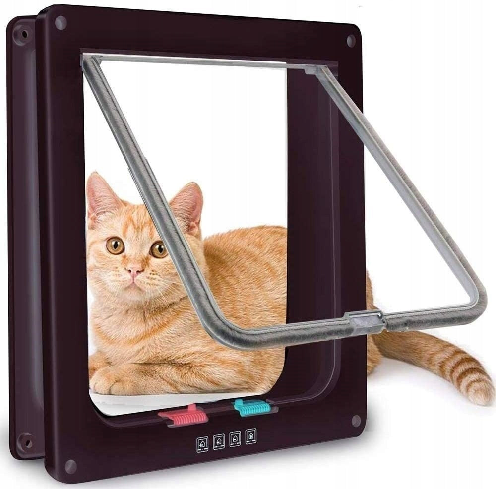 Durų atvartas su 4 krypčių magnetu, naminių gyvūnėlių durys katėms ir šunims (XL -29 x 25 x 5,5 cm, ruda)❤️