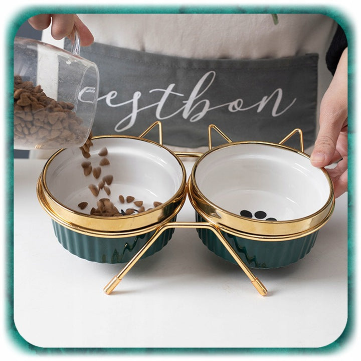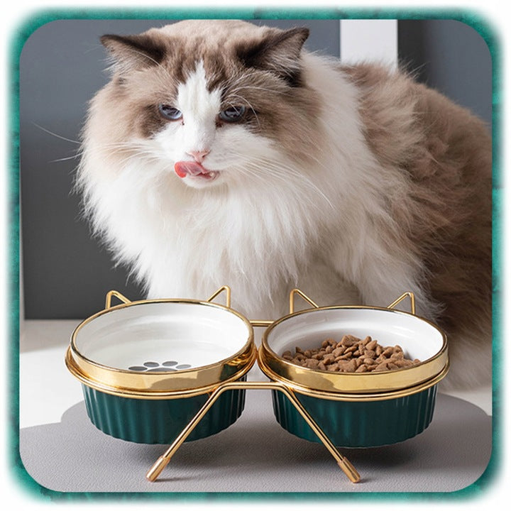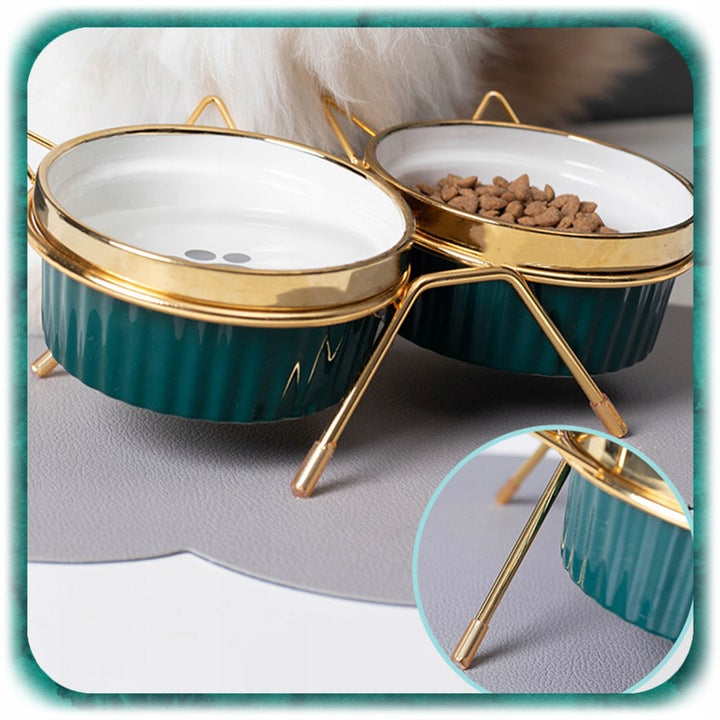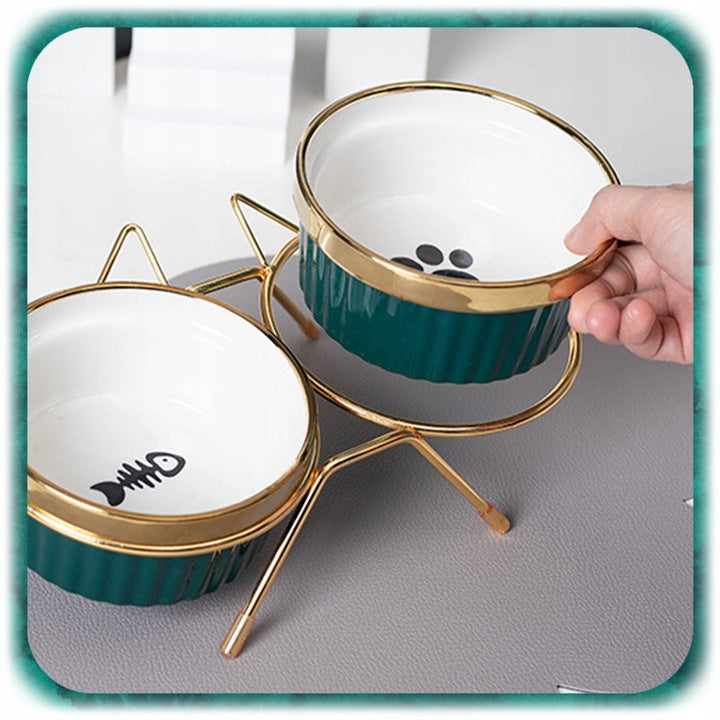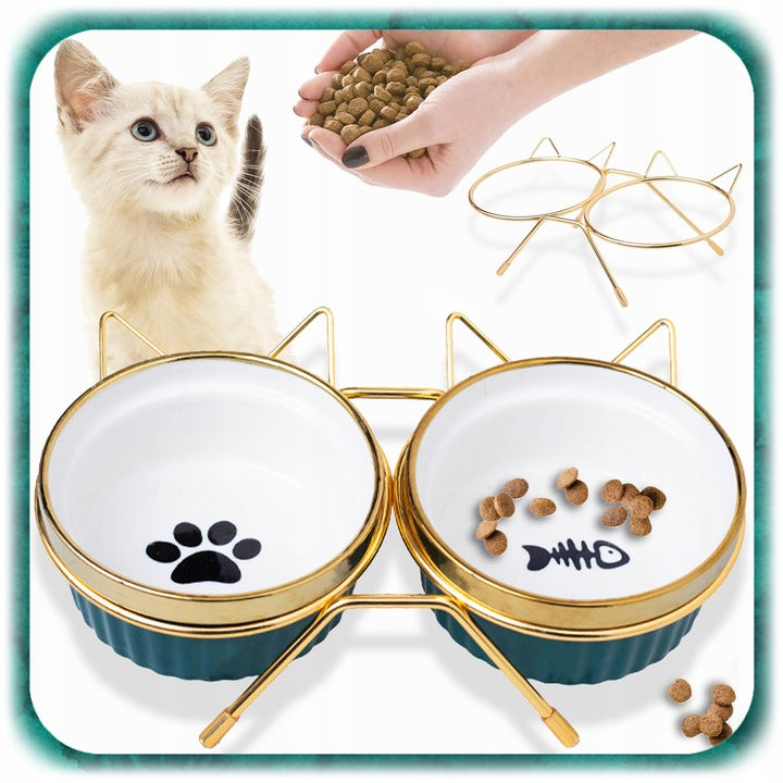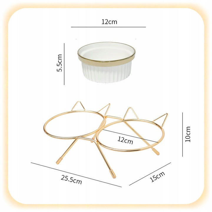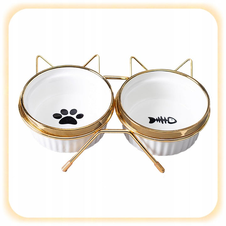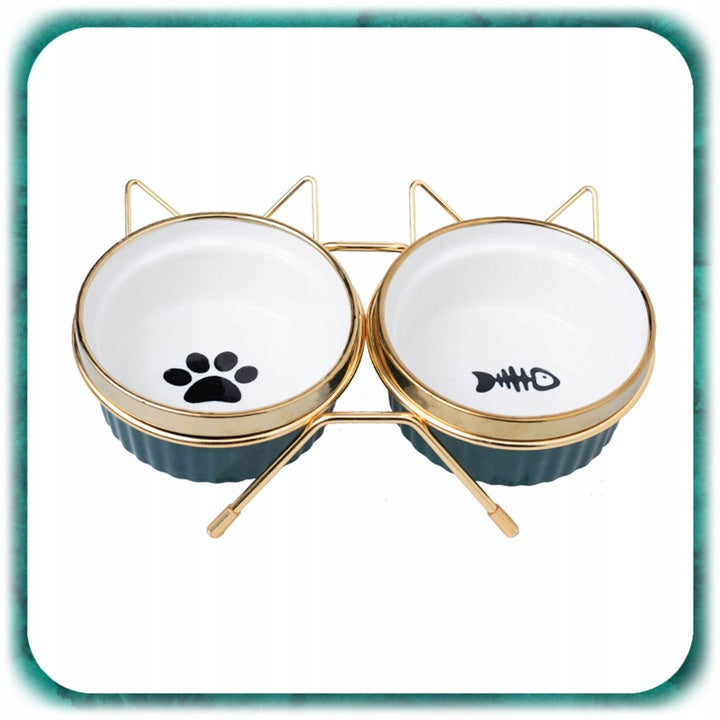 Dvigubas keraminis katės dubuo ant stovo 2x300m