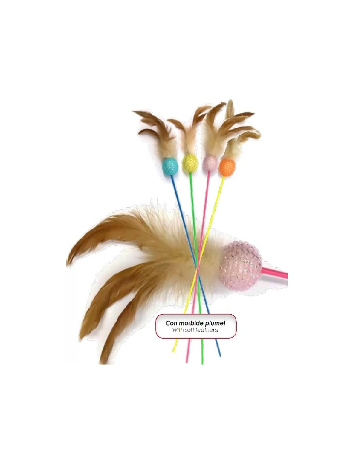 Žaislas ant pagalio katėms - meškerė su plunksnomis. Žaislas padės patenkinti katės medžiojimo instinktą ir suteiks džiugių akimirkų žaidžiant.