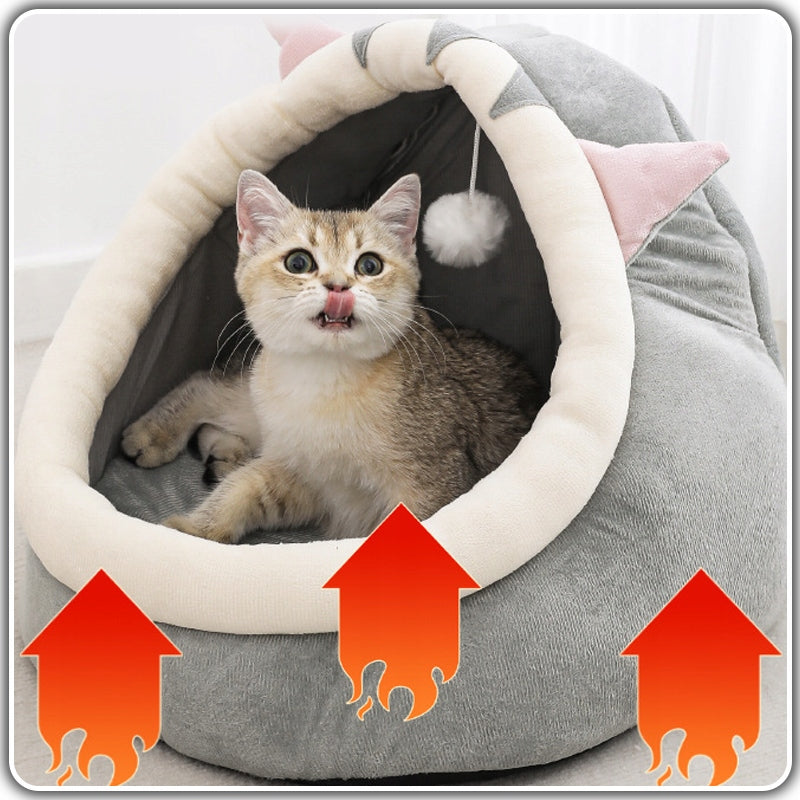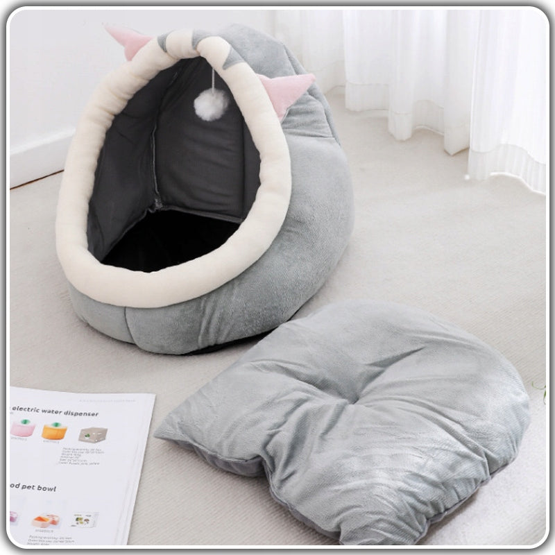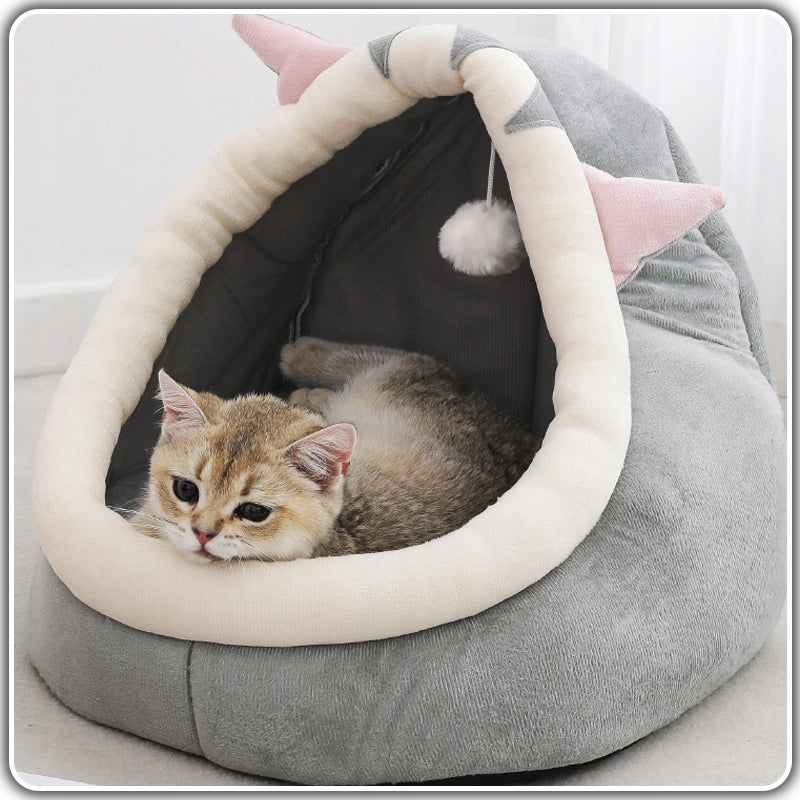 Saugumo ir Ramybės Kampelis: Uždara guolio konstrukcija suteikia katės ieškomą užuovėją, kurioje ji jausis saugi ir apsaugota nuo namų šurmulio. Tai puikus kampelis, padedantis mažinti augintinio stresą ir užtikrinantis ramybę.