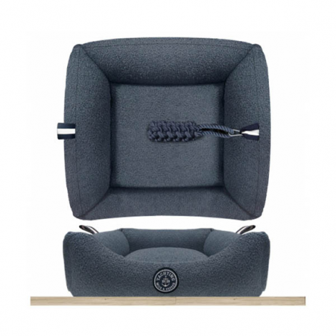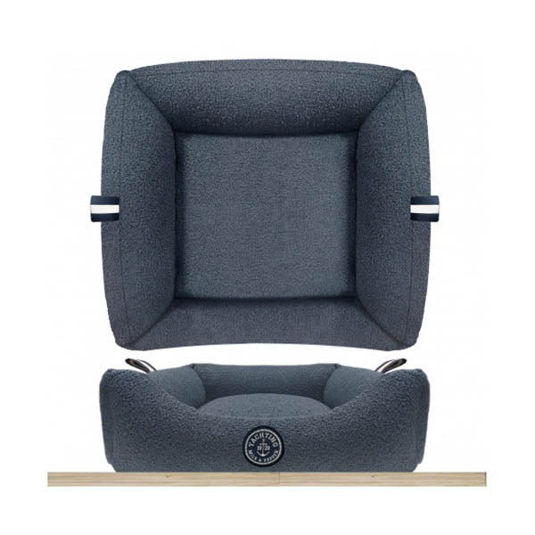 - Mėlyna kvadratinė sofa jūsų augintiniui su išskirtiniu kilpiniu audiniu (užvalkalas nuimamas)