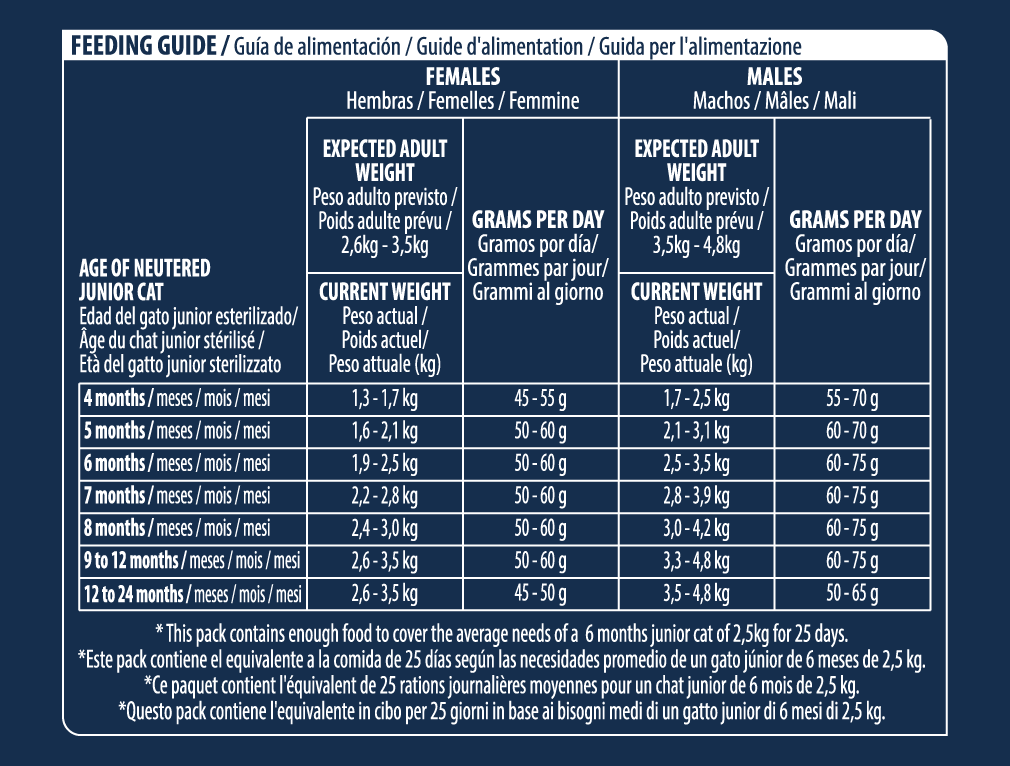Visavertis ir subalansuotas pašaras sterilizuotoms jaunoms katėms (nuo sterilizacijos iki 24 mėn amžiaus).