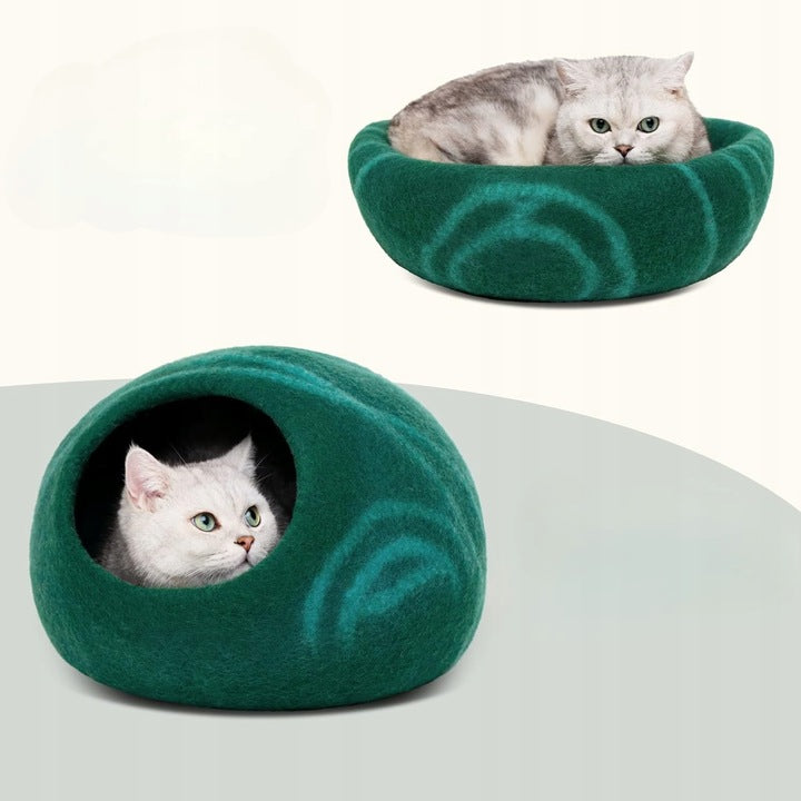 - Dvigubas naudojimas: veltinio vilnos urvas suteikia jūsų katei privačią asmeninę erdvę, kurioje ji gali pasislėpti, miegoti ir ilsėtis. Jis taip pat gali būti naudojamas kaip katės guolis gulėti, atsipalaiduoti ir žaisti.