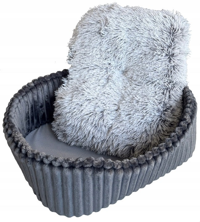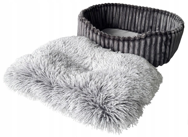 Minkštas pūkuotas guolis šunims ir katėms 60x50cm LEO velvetas grafito spalvos