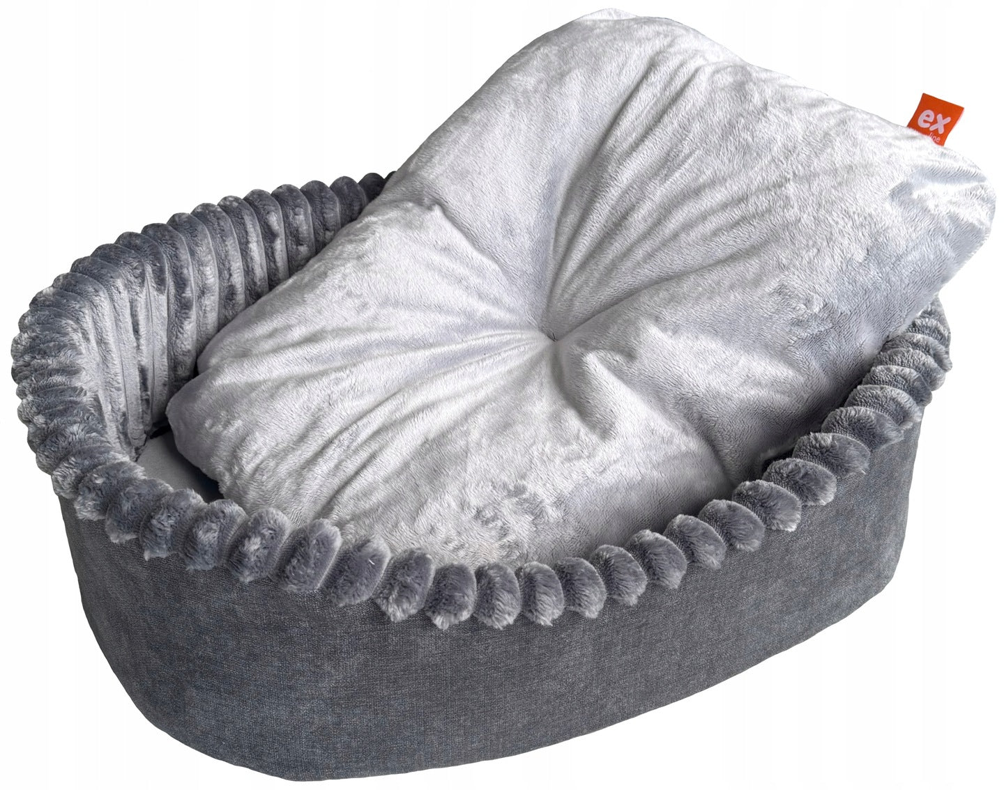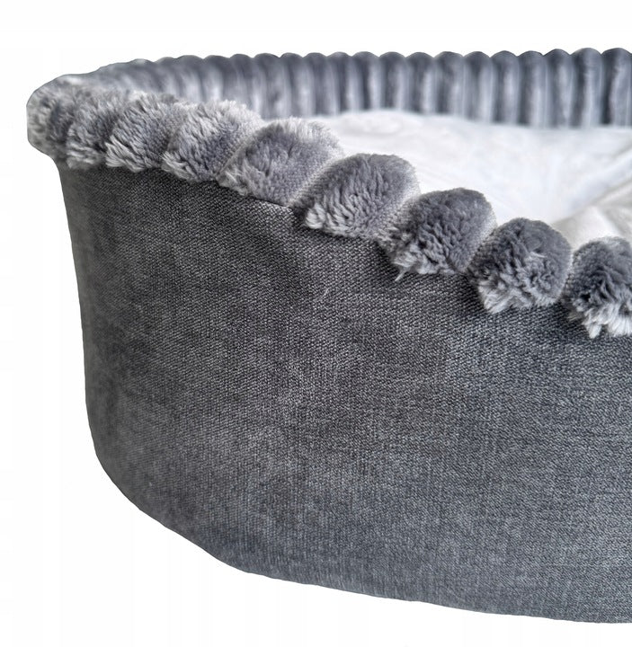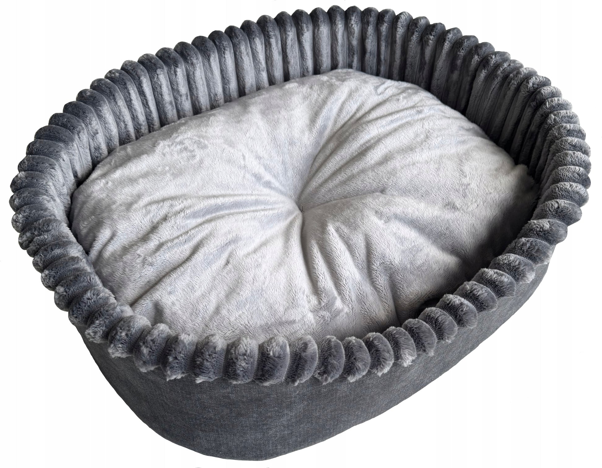 Minkštas pūkuotas guolis šunims ir katėms 60x50cm LEO velvetas pilkas
