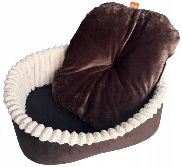 Minkštas, pūkuotas guolis šunims ir katėms 60x50cm LEO velvetas rudas