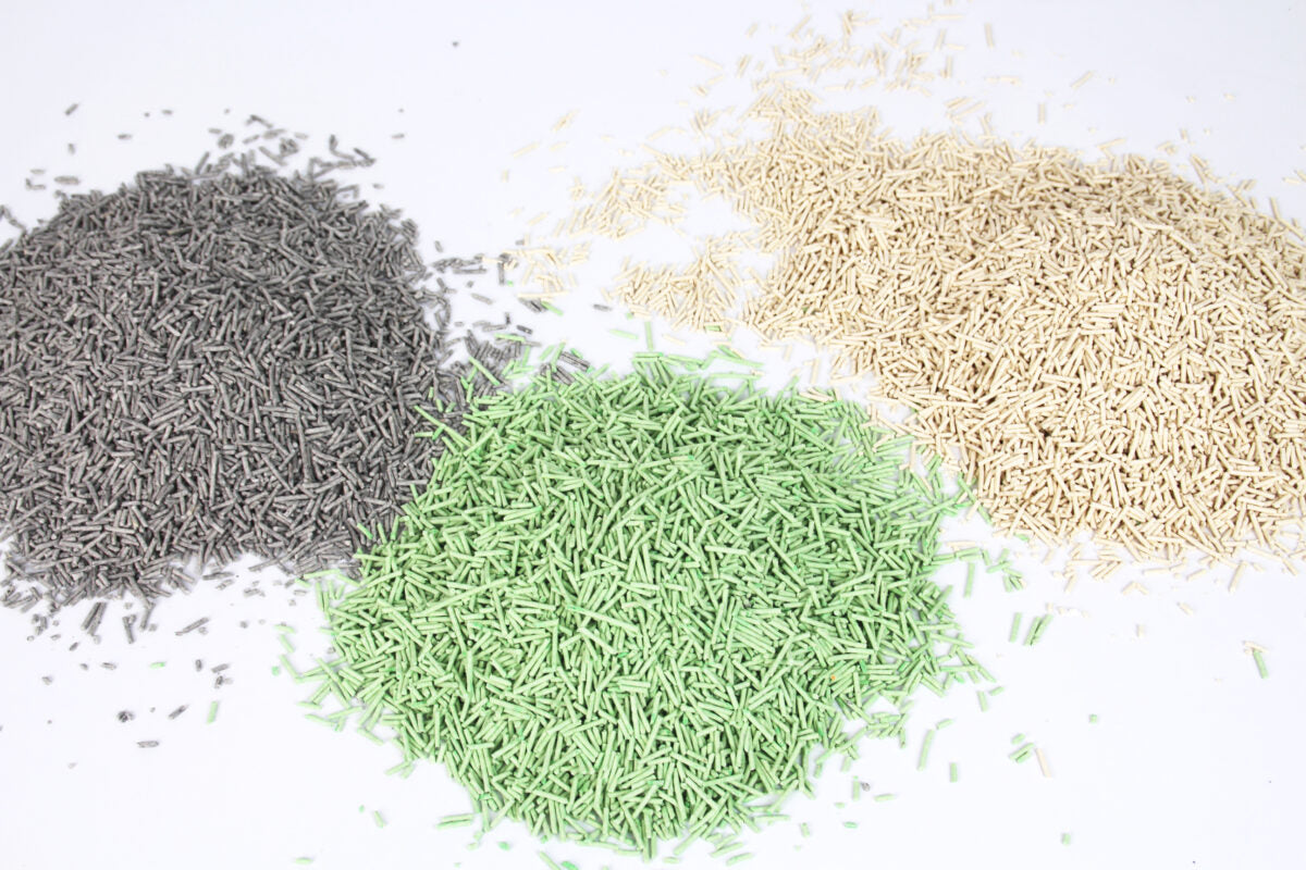 1. Supilkite Murrfect Bamboo Tofu kačių kraiką į kraiko dėžę kelių centimetrų gilio.