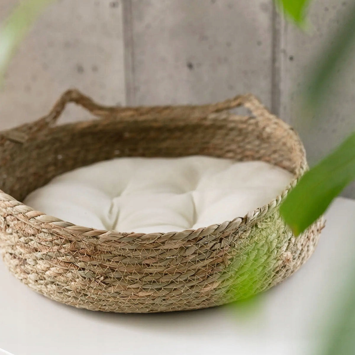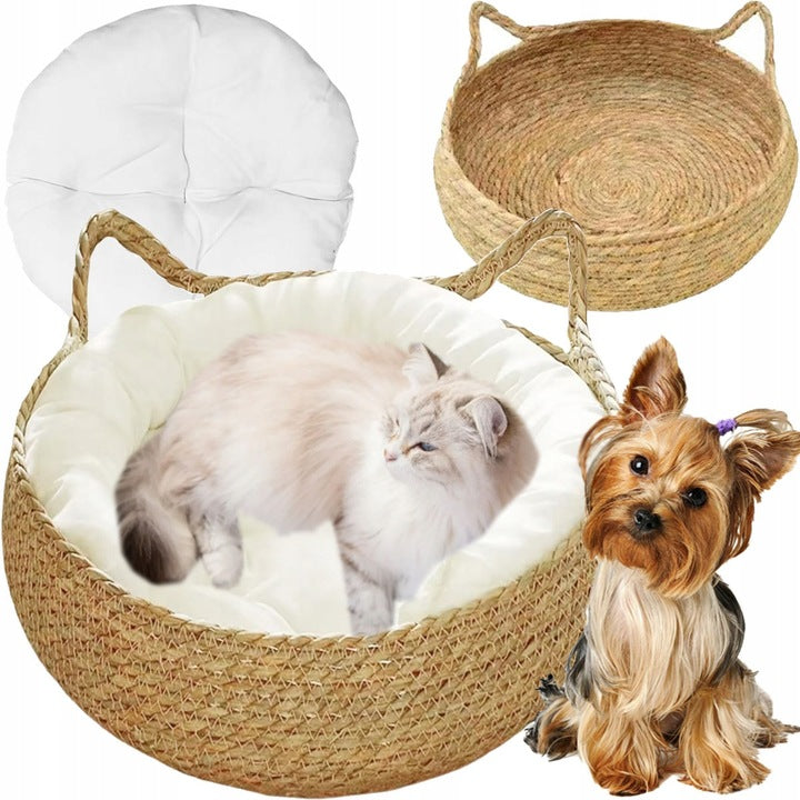 - Natūrali medžiaga: krepšelis iš kukurūzų lukštų yra ekologiškas, draugiškas gyvūno odai ir atsparus kasdieniam naudojimui.