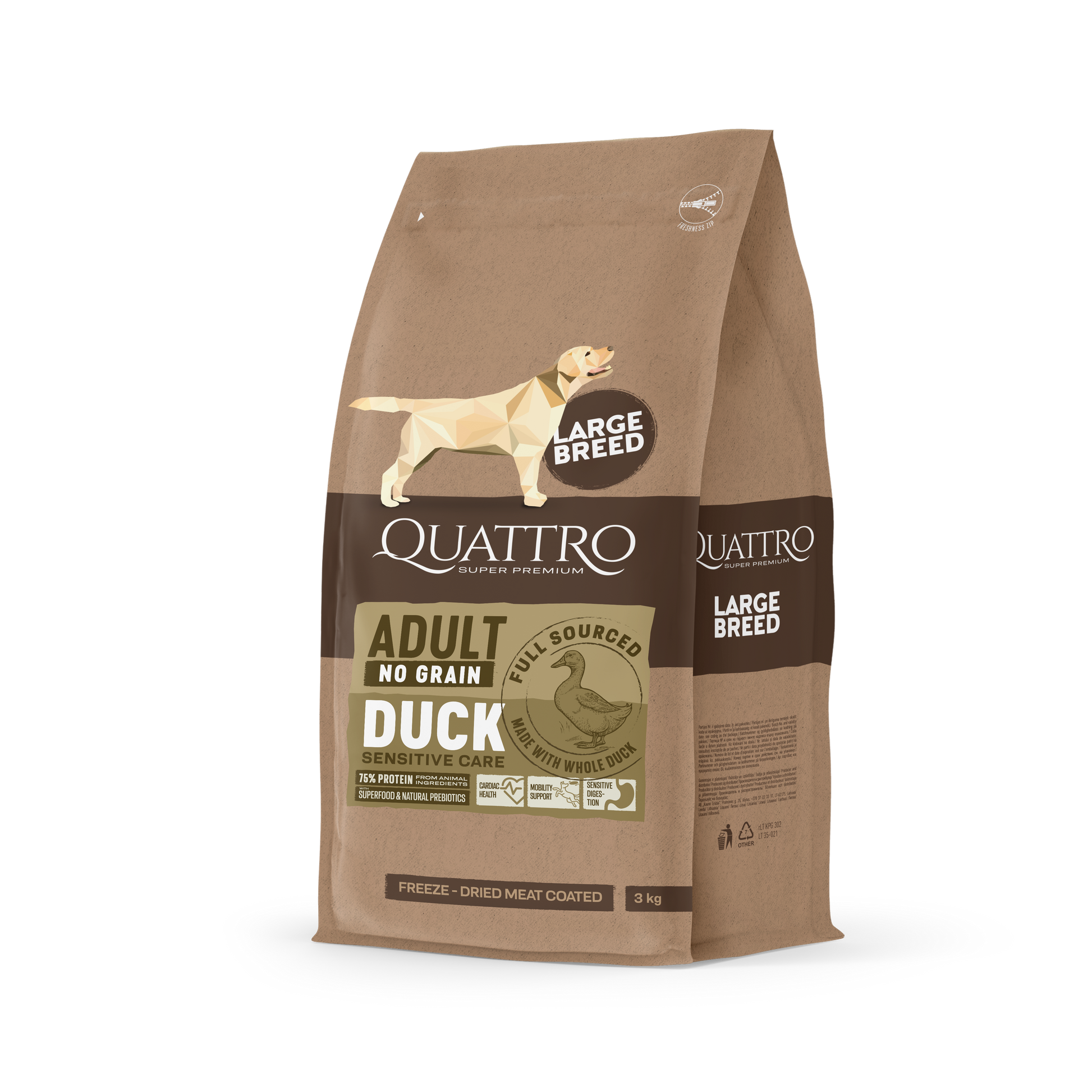 QUATTRO begrūdis didelių veislių suaugusių šunų pašaras su antiena 3kg