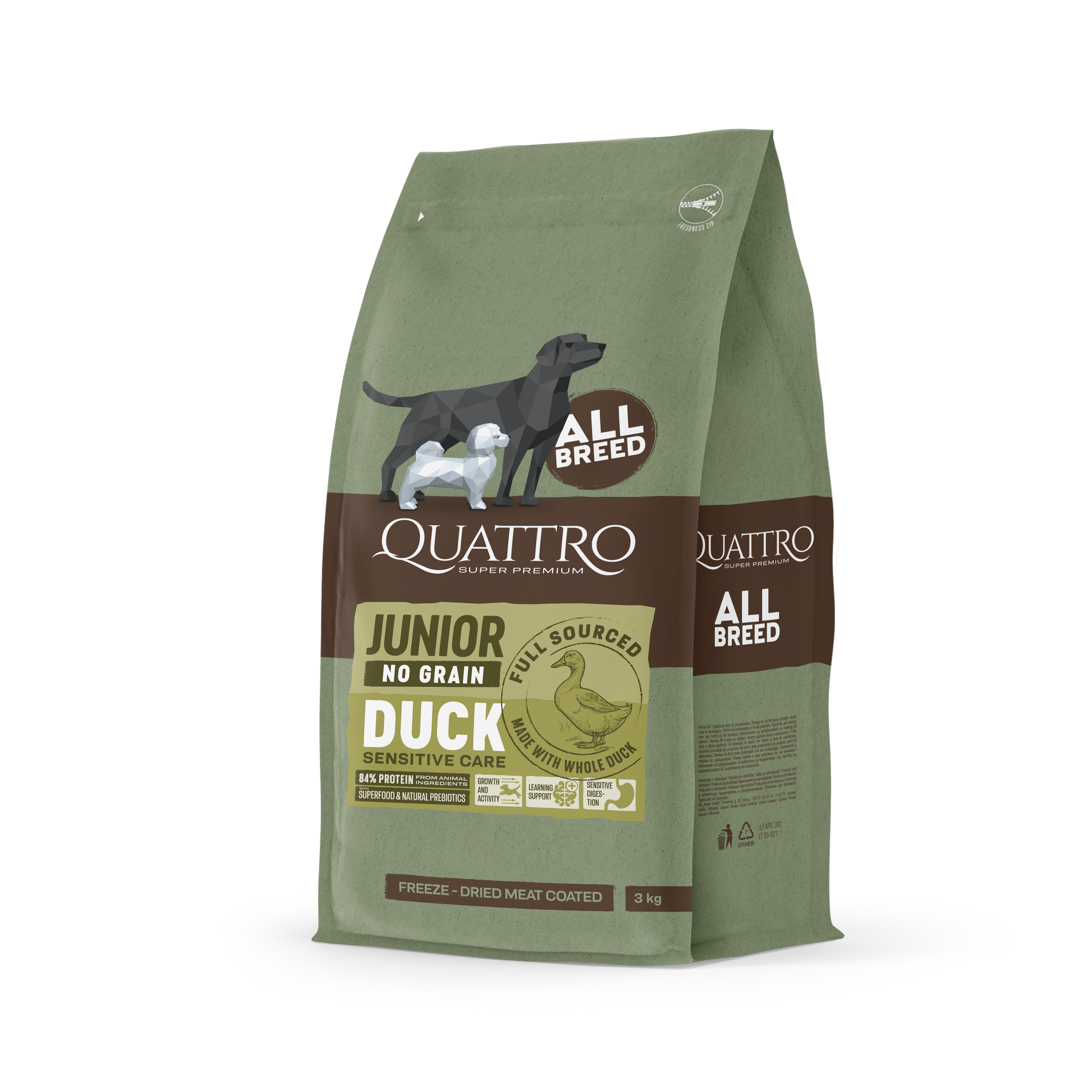 QUATTRO begrūdis visų veislių jaunų šunų pašaras su antiena 3kg