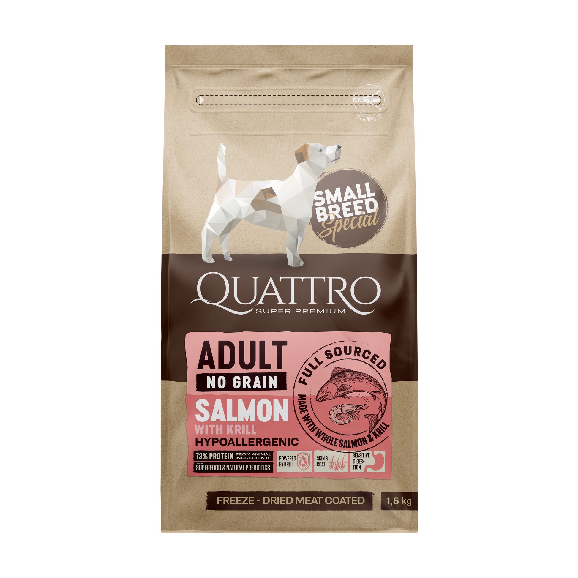 Quattro SB sausas suaugusių mažų veislių šunų pašaras su lašiša ir kriliu 1,5kg