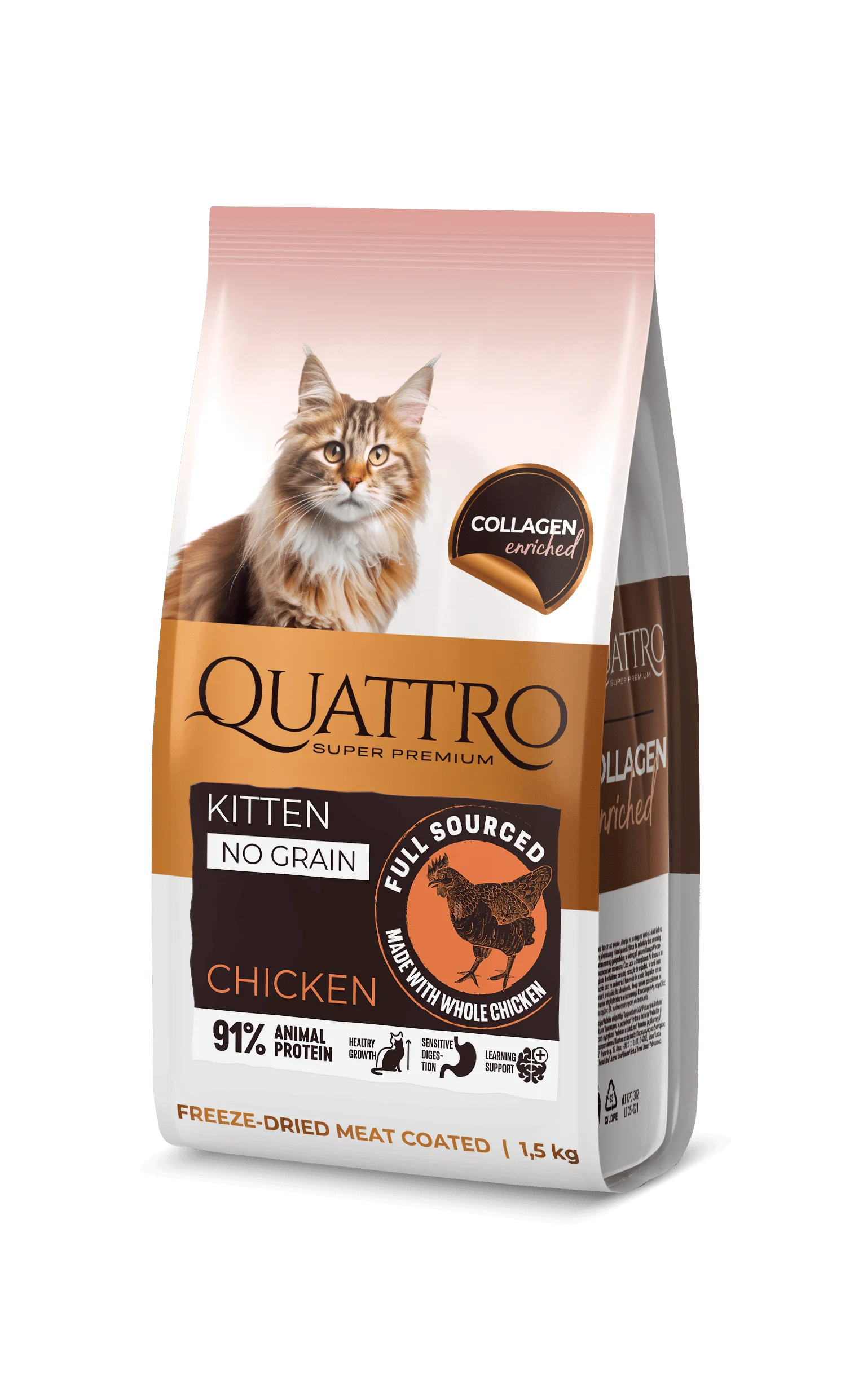 QUATTRO visavertis sausas pašaras visų veislių kačiukams su vištiena (iki 12 mėnesių), 7kg
