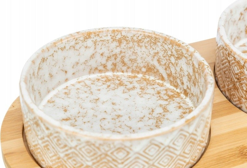 Komplektas, keramikiniai dubenys ant bambukinio stovo