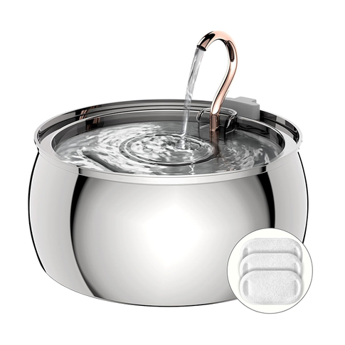- Dviguba filtravimo sistema: automatinis vandens fontanas turi aktyvuotos anglies filtrą ir išankstinio filtravimo kempinę, tad Jūsų augintinis visad gaus švarų ir šviežią vandenį.