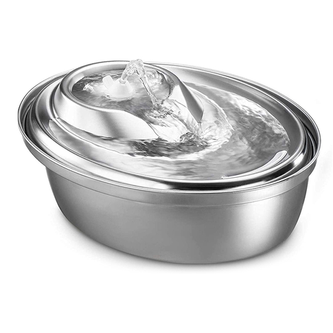 - Nerūdijančio plieno fontanas talpina net 2 litrus vandens, tad atsižvelgiant į augintinio dydį, šis fontanas gali aprūpinti vandeniu Jūsų augintinį net iki 2 savaičių.