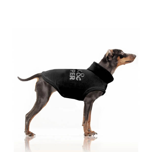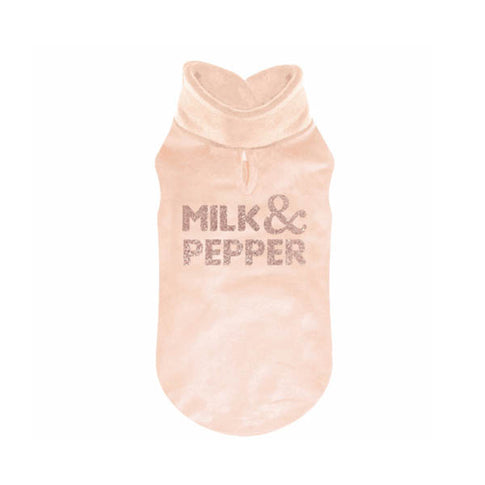 Juodos arba rožinės spalvos veliūrinis džemperis su apykakle mažiems ir vidutinio dydžio šunims.
