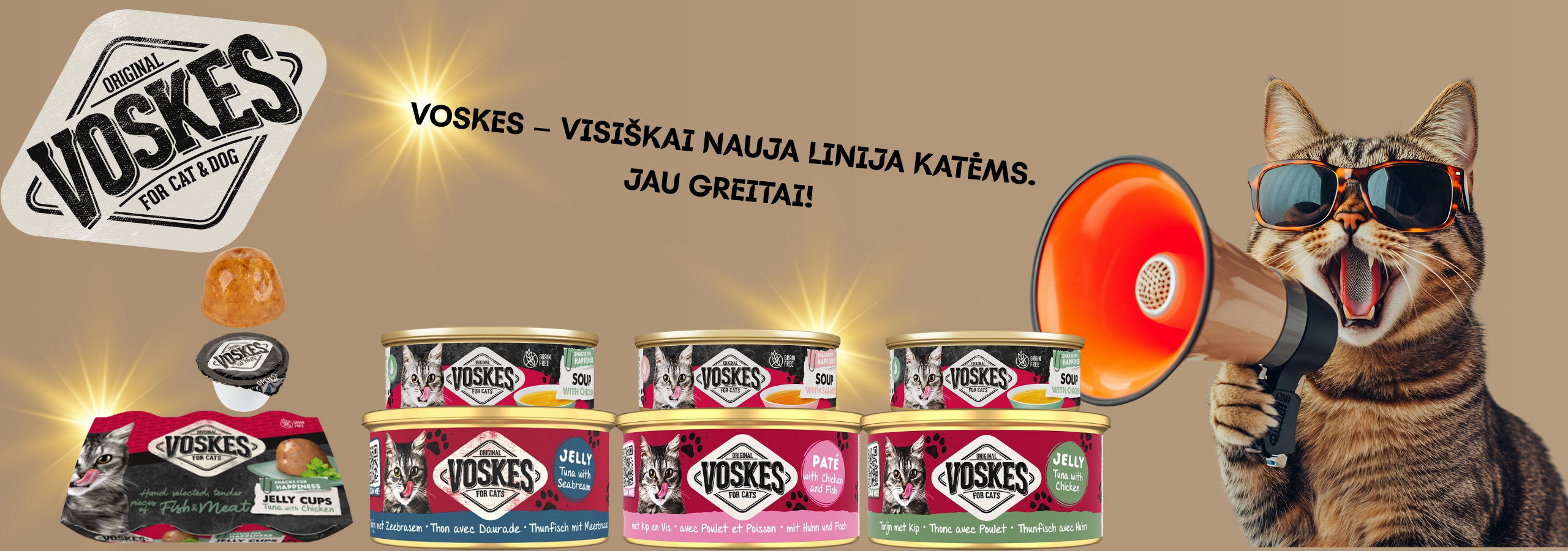 Voskes Jelly Cups Tuna & Prawn - želė su tunu ir krevetėmis, skanėstas katėms, 6x25g