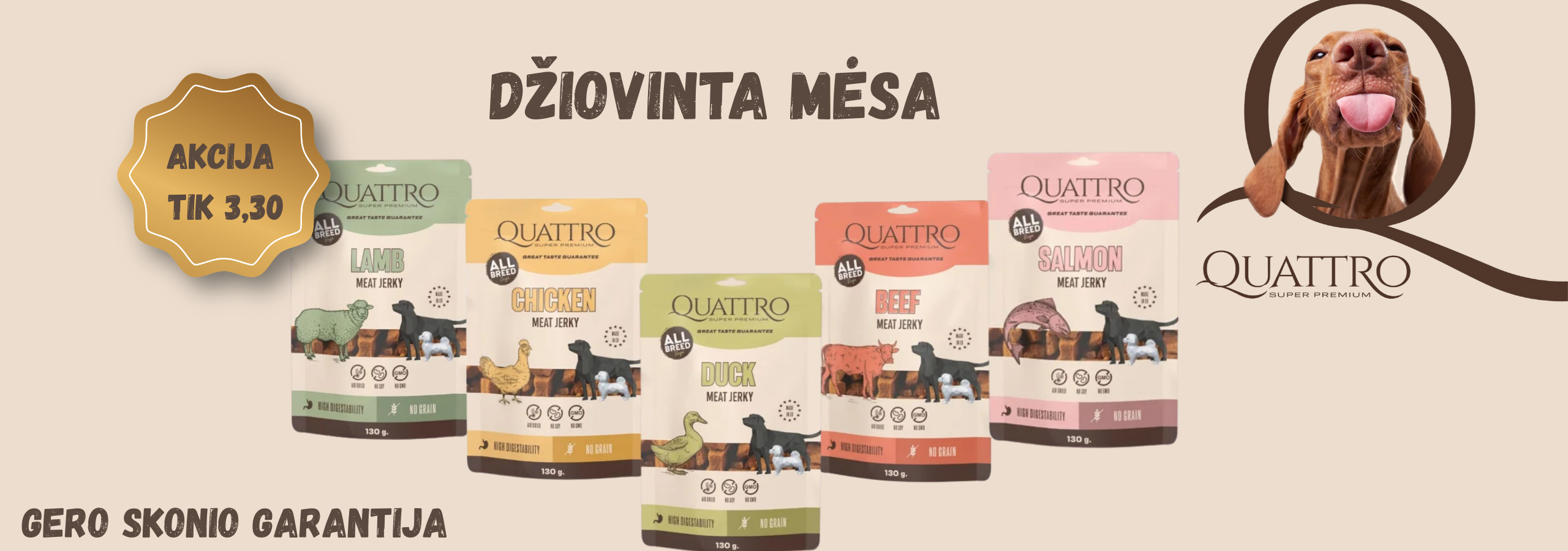 QUATTRO begrūdis visų veislių suaugusių šunų pašaras su ėriena monoproteinas, 3kg