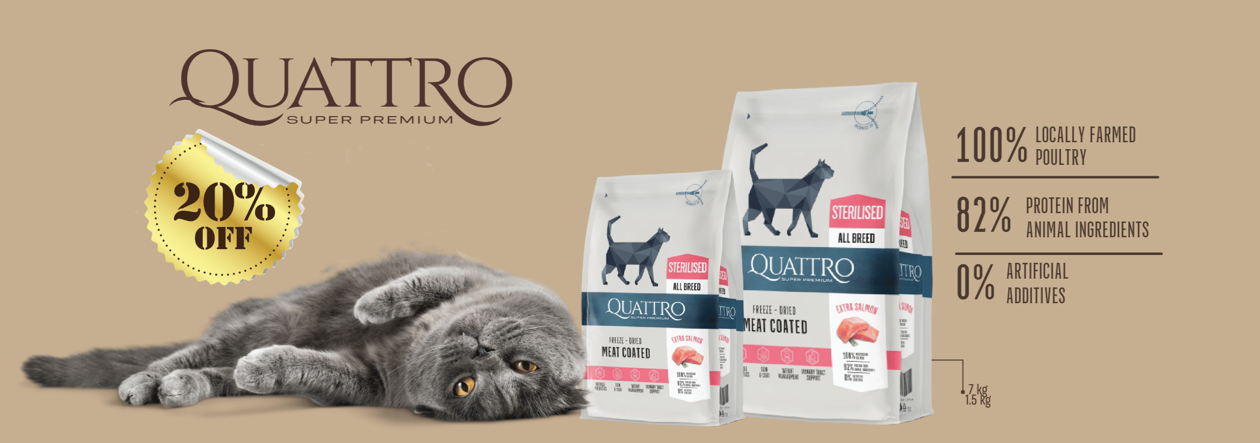 QUATTRO Extra Salmon Sterilised su lašiša sausas sterilizuotų kačių pašaras, 7kg